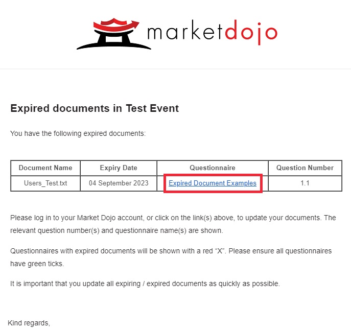 If you have received an email informing you that you have expired documents, please click on the questionnaire link (see below) in the email you have received: