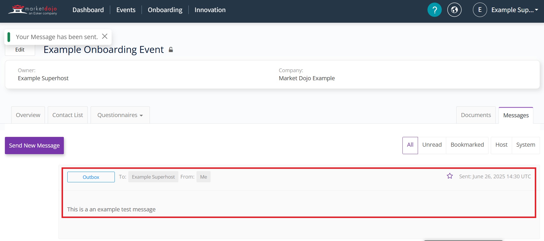 Compose and Send a Message: Click on the option to create a new message, enter your subject and message content, and send it. The host will receive your message and can respond directly through the platform.