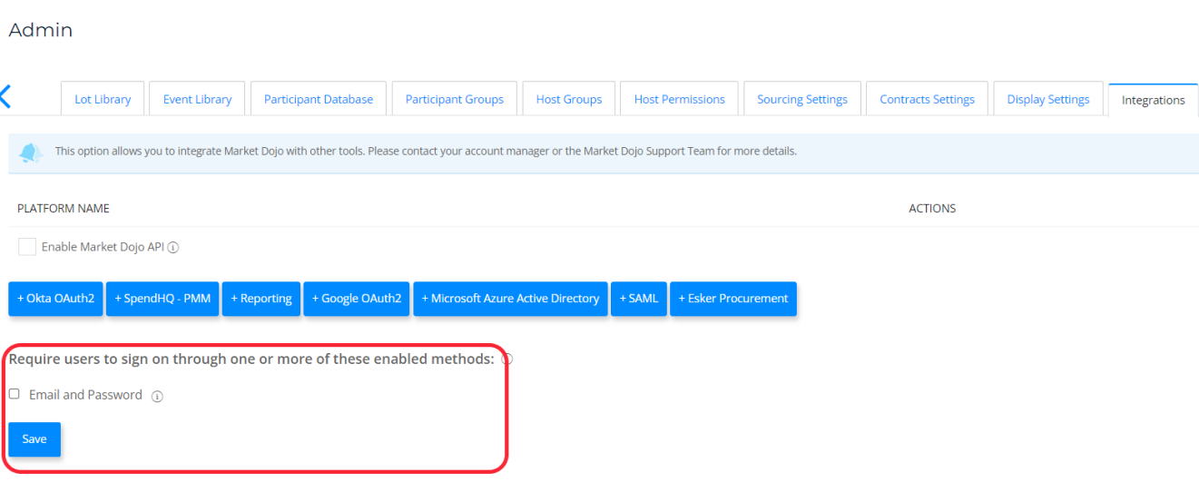 Note : If you have a SSO enabled as well you will have a number of options that will display, simply "check" or "uncheck" each tick box depending on which sign in options you wish to allow.