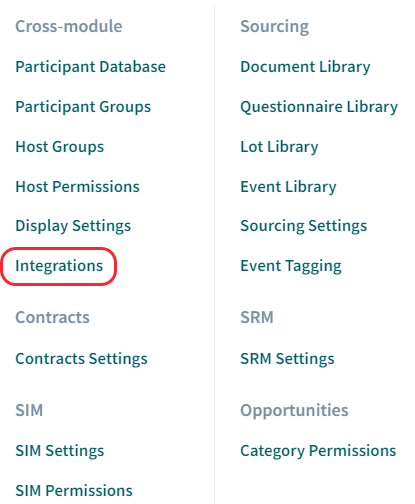 To view the SSO Configuration you would first need to open the "Integrations" page. This can be found in the admin drop down, if you do not have this option available speak to your Super Host.