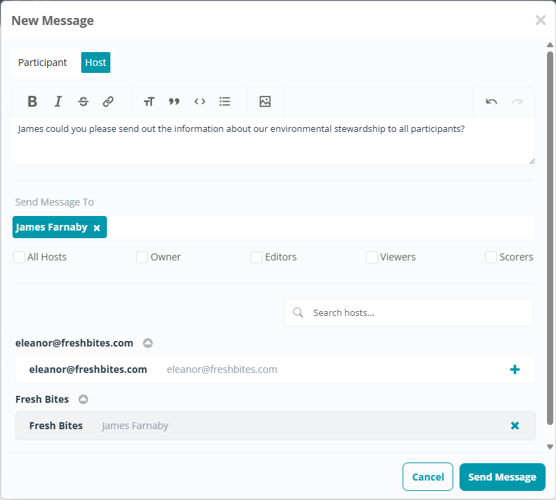 From the 'Compose Message' pop-up the tabbing system allows you to switch to 'Host' messaging mode.