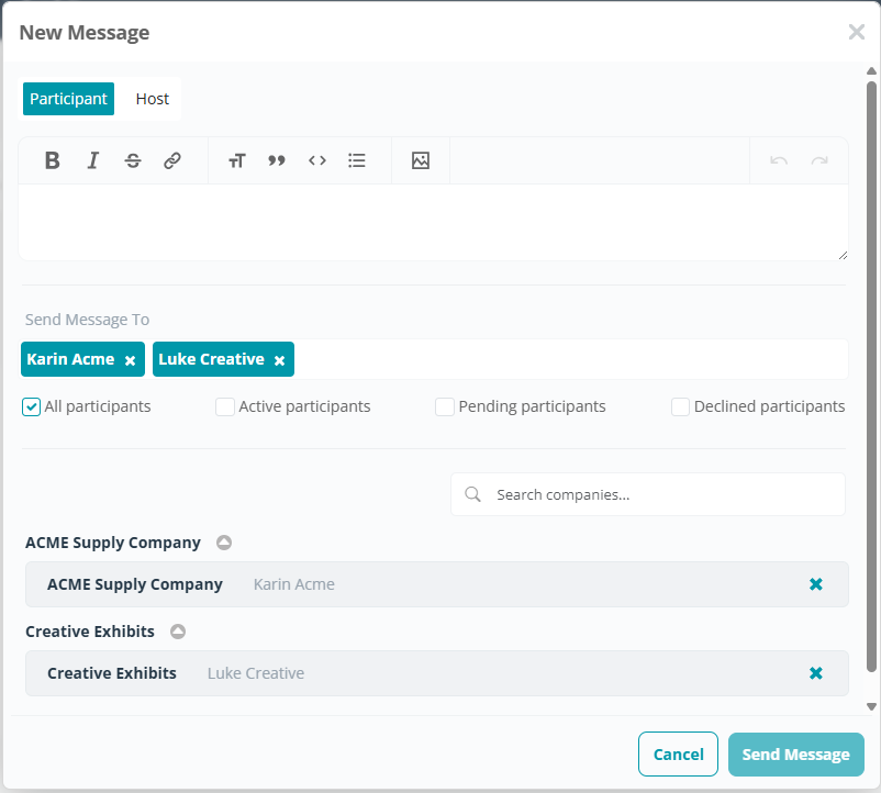 On click, a pop-up will appear where you can compose the body of the message and select the individuals you would like it to be sent to.